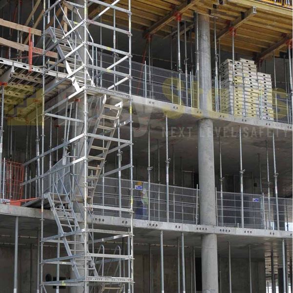 De Stalen Trappentorens van EasyStairs kunnen in diverse hoogtes worden opgebouwd, zowel verankerd als vrijstaand d.m.v. steunberen. De trappentorens zijn zeer stabiel en hebben een hoge draagkracht. Zijn breed en hebben aan beide trapkanten leuningen. Hierdoor zijn de Trappentorens altijd veilig te betreden. Ook bij slecht weer of met volle handen. Al onze Trappentorens zijn voorzien van het Europees EN12811 keurmerk. U bent dus verzekerd van een kwalitatief hoogwaardige en veilige Trappentoren.